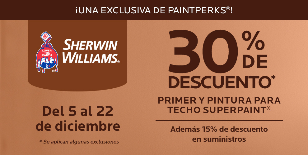 Ofertas Descuentos *La oferta es válida solo para miembros registrados de PaintPerks® en ventas al por menor de productos de venta